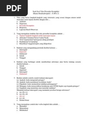 Soal teks prosedur untuk latihan ini berupa 20 soal pilihan ganda yang .